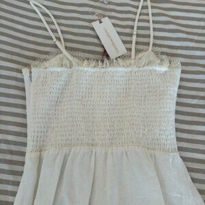Loving on the Linella Dress. Designed from a crisp linen fabric, this must-have maxi was made for summer. Timeless and classic in all the right ways, this dress features thin spaghetti straps, bustier-inspired cups at the bust with shirring details, a playful keyhole cutout, a center front placket that stops at the hip above a flirty center front slit. The back is smocked for easy wear.
