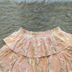 Loveshackfancy floral pink ruffle mini skirt cotton size medium