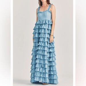 Loveshackfancy Idra Cotton Polka Dot Maxi Dress Blue Bonnet Size 8 MSRP $625