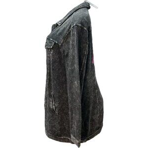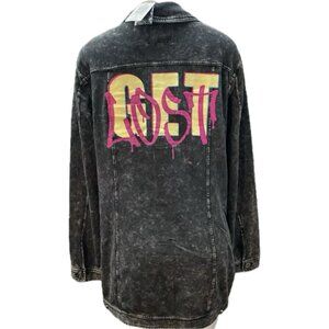 ITEM: Lovesick +4 Black Washed-Out Get Lost Graphic Button Down Pockets Long Sleeve Shacket