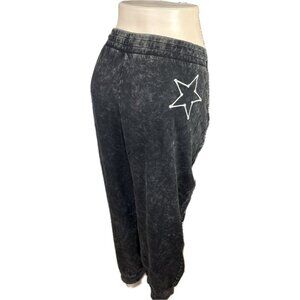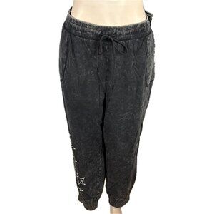 ITEM: Lovesick +5 Black Acid Wash Drawstring Waist Pockets Star Skeleton Bones Graphic Jogger Pants