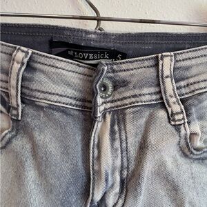 Stylish gray skinny jeans with distressed details. Ideal for casual outings.