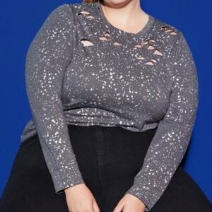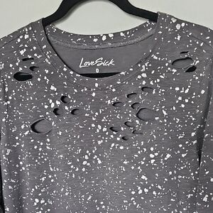 Lovesick Gray Ripped Destroyed Metallic Graphic Long Sleeve Stretch Tee 0X