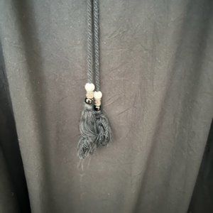 Lovesick Women's Black Tunic 3/4 sleeved with white embroidery design with tassel tie on front size 0