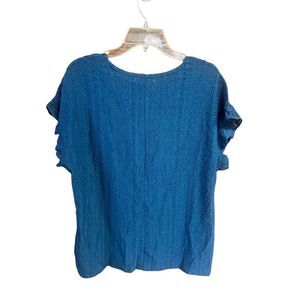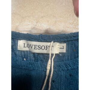 Lovesoft Pullover Eyelet Blouse Sz L Bluish Green NWT