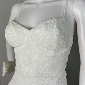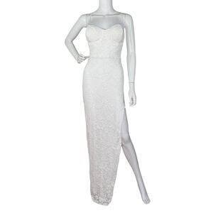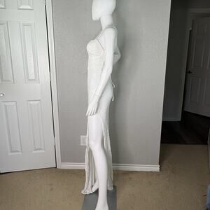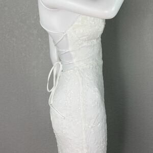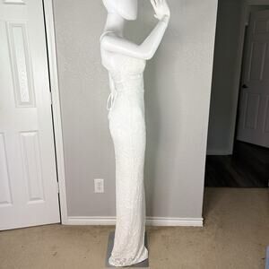 Lovesome Lace-Up Sequin Slip Dress Gown Prom Homecoming Wedding White Sz S