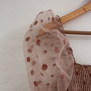 Lovesong Polka Dot Smocked Mini Dress Size M / Color Beige / Tan