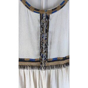 Lovestich Boho Blouse Cream Cotton Sz S Arabian Nights Beaded Hippie Embroidery