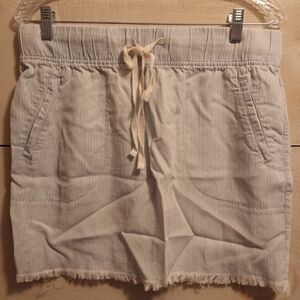 Lovestitch 100% cotton blue and white striped skirt women's med with fringes and pockets
