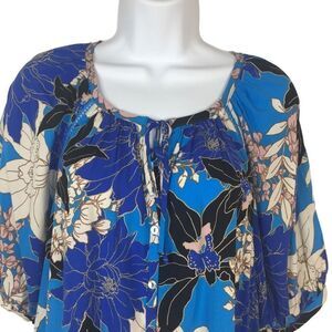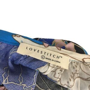 Lovestitch Blouse Womens Size Large Blue Button Down Floral Print #o
