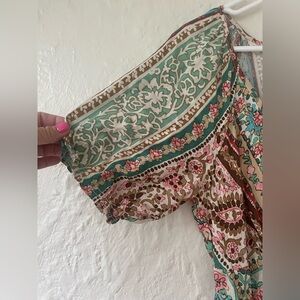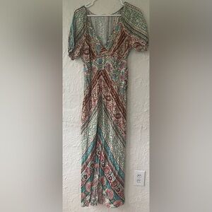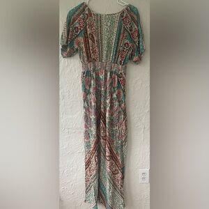 Lovestitch Boho Dreams Maxi Dress, V-Neck, Puff Sleeves, 100% Rayon; size S