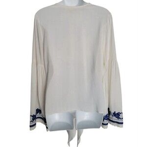 Lovestitch Boho Embroidered Front Tie Blouse Top
