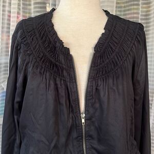 This jacket is in good condition however, the elastic around the neckline may be a tad stretched out, but you can see on my Mattick in the fit.