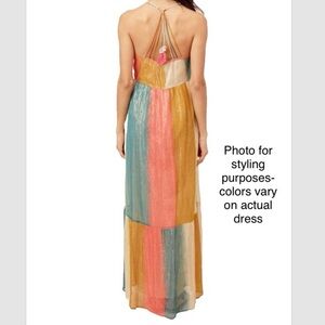 Lovestitch Colorful Halter Maxi Dress Rainbow Block Shimmery Lined Boho Glam Med
