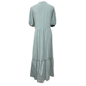 Lovestitch Dress Button Front Midi Blue Boho Linen Blend Puff Sleeves Sz Large