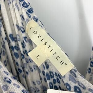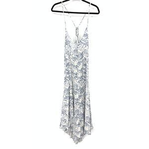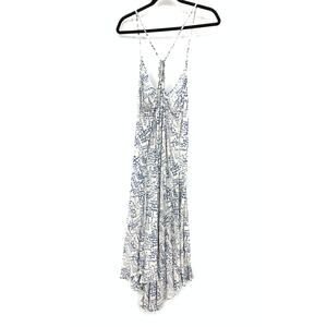 Lovestitch High Low Midi Dress Womens Size Large Blue White Print Racerback NEW