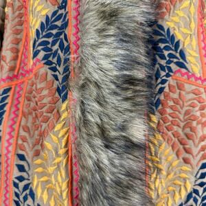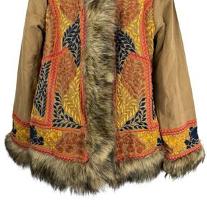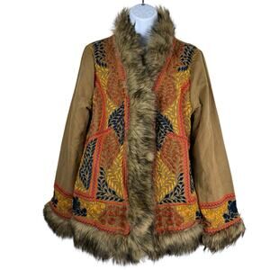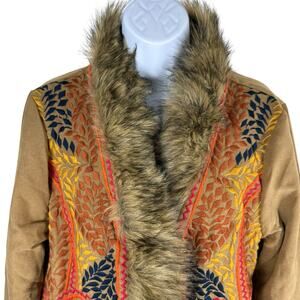 Lovestitch Jacket Womens Large Brown Embroidered Faux Fur Faux Suede Penny Lane