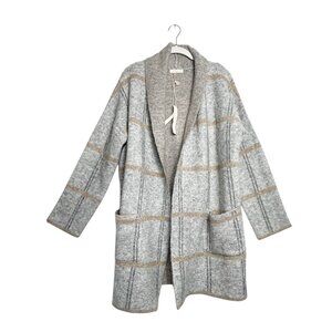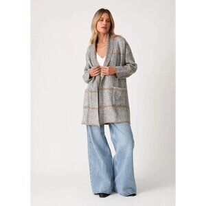 Lovestitch Juno Windowpane Plaid Cardigan Jacket in Gray - Sz S - NWT