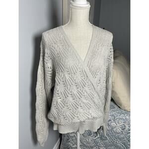 Lovestitch Knit Wrap Sweater L Gray Open Weave Boho Textured Cozy Balletcore