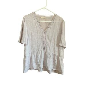 Lovestitch Lattice Trim Top Pale Pink Crotchet Peplum Blouse M