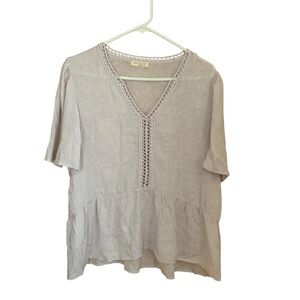 Lovestitch Lattice Trim Top Pale Pink Crotchet Peplum Blouse M