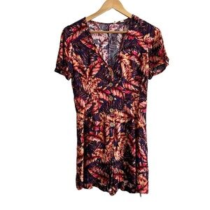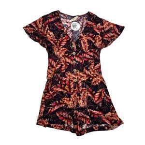 Lovestitch Leaf Print v-neck Short Sleeve Romper Size Small