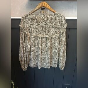 Lovestitch Leopard Print Blouse - Cream and Black Peasant Boho Tassels size M