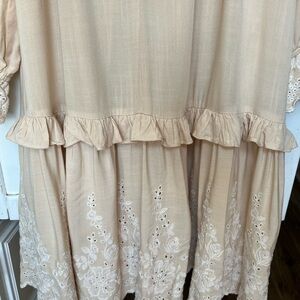 Craving embroidery? We love the delicate stitched detail on this classic bohemian mini dress. With flirty details like a ruffle-trimmed tiered skirt and an embroidered ruffled cuff. Perfect for Spring, this versatile style can be dressed up with a heeled sandal or dressed down with a tennis shoe.