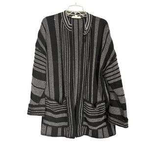 Lovestitch Oversized Cardigan Womens Medium Black White Stripe Knit Slouchy Long