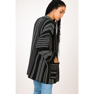 Lovestitch Oversized Cardigan Womens M/L Black White Stripe Knit Slouchy Long