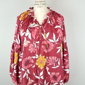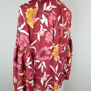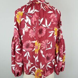 Lovestitch Pretty Rust Floral Blouse with Lantern Sleeves * Ladies Size Small