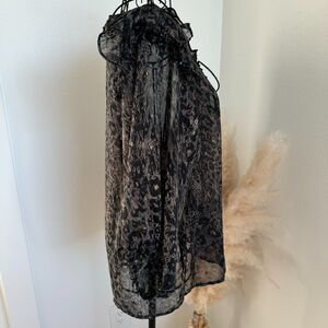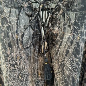 Lovestitch Sheer Chiffon Animal Print Tassel Tie Ruffle Blouse Medium