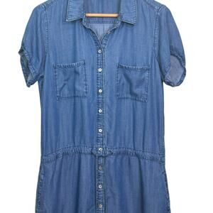 Lovestitch Size Medium Chambray Denim Drawstring Waist Button Up Shirt Dress