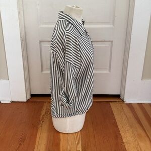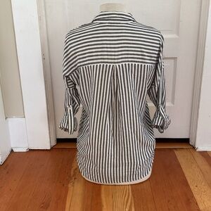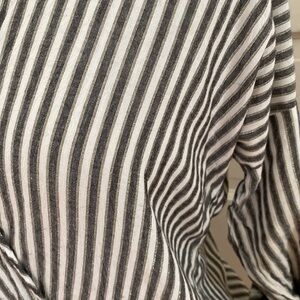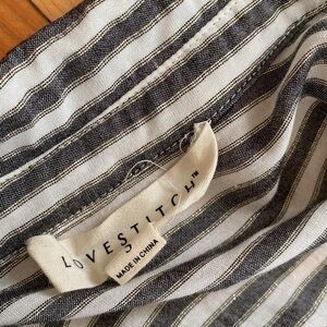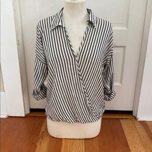 Lovestitch sparkly gold stripe roll tab sleeve top with wrap style front and bubble hemline. Size small.
