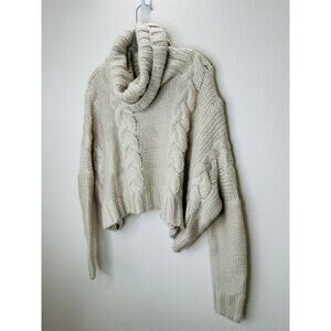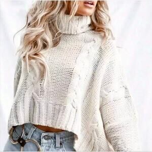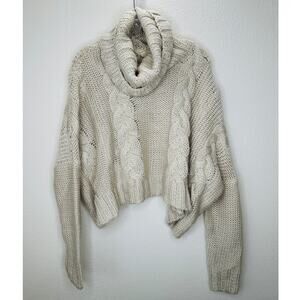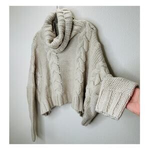 Lovestitch Tan Chunky Cable Knit Turtleneck Oversized Cropped Sweater S