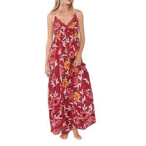 Lovestitch Wine/Gold Macara Floral Sleeveless Tiered Maxi Slip Dress Medium NWT