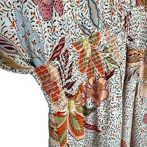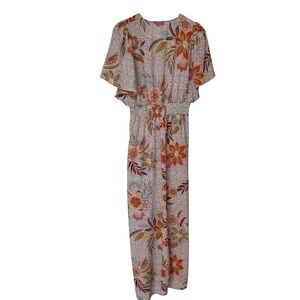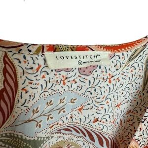 Keywords: Lovestitch, bohemian dress, maxi dress, floral pattern, casual wear, V-neck, flutter sleeves, smocked waist, high waist, multicolor, women's fashion, garden party, lightweight, breathable, pre-owned.