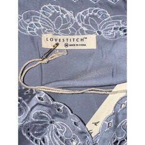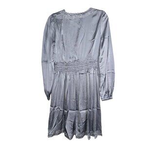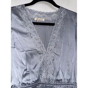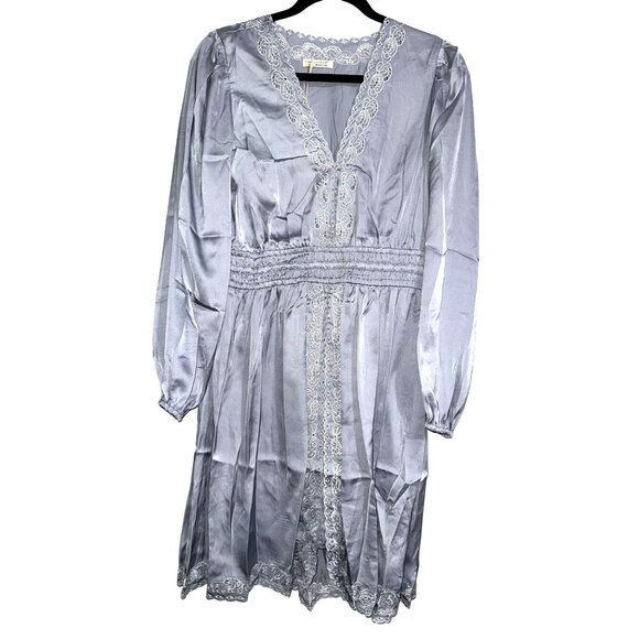 Lovestitch Womens Long Sleeve Embroidered Lace Trim Dress Light blue Polyester S