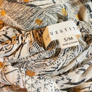 Lovestitch Womens Off Shoulder Blouse Multicolor Sparkle Print Long Sleeve Hi Low S/M