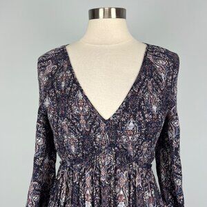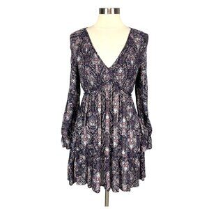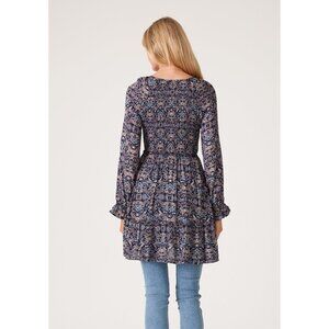 Lovestitch Womens Riley Tiered Tunic Top Boho Purple Paisley Long Sleeve size S
