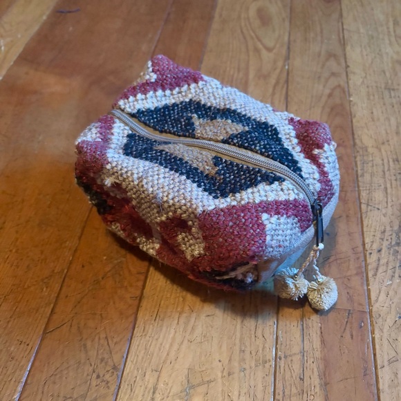 Lovestitch Woven boho Cosmetic Bag - Red and Black with tassels. So cute and in good condition! Please see photos for details.
