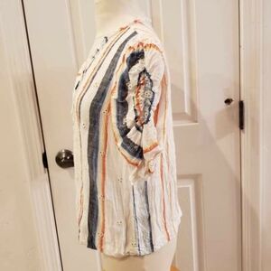 with cutout eyelet look on sleeves.