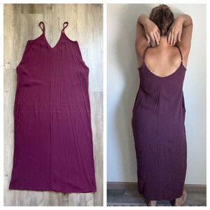 Gorgeous purple Lovestitch maxi dress with side hand pockets. Adjustable spaghetti straps. Material: 100% rayon. Flowy and feminine. Size S/M. Please see photo section for approximate flat measurements + my model stats for fit reference. Note: one small snag show in close up photo.