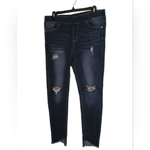 Lovesweet Denim Jegging Distressed Dark Blue Jeans, Women's Size L
