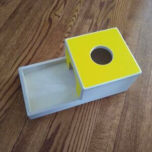 Lovevery ball drop (with 2 balls) and picture cards from the Inspector playkit. Targeted at 7-8 months but fun for much longer.