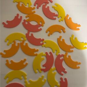 EUC Lovevery Rhyming Rings Set. All pieces, including bag and directions (slightly rumpled). From dog friendly, smoke free home. From examiner play kit. Engage your child with the Rhyming Rings Toy Set. Featuring vibrant yellow rings, this set is perfect for interactive learning and fun.
