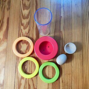 Lovevery Ring Stack and Egg Cup from the Explorer playkit. Targeted at 9-10 months but fun for longer. Practice stacking, coordination and concentration. Very good condition.