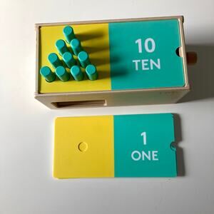 The counting box provides early exposure to numeracy. Count the pegs while you place them into their corresponding shape card, then pull the handle to hear them fall.