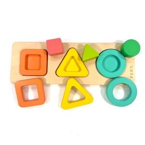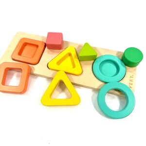 * Key details: Wooden puzzle board with 3 colorful stacking shapes