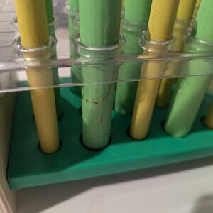 Lovevery wooden posting stand from the Companion play kit (ages 22, 23, and 24 months). Item is in good used condition. Item has all pieces. Note pen marks on peg.